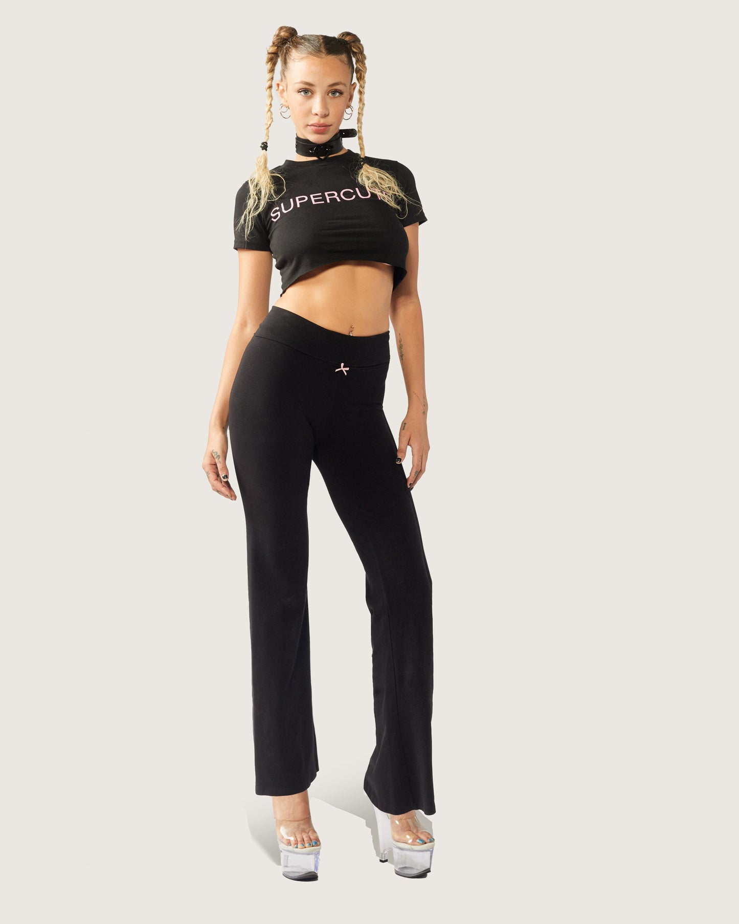 Unleash your inner feline with our ๐ต๐๐๐๐ ๐ฆ๐พ๐๐๐ ๐น๐๐ถ๐๐๐! These high-waist flares feature a sleek silhouette and playful design, perfect for making a bold statement. The back is adorned with a sparkling "KITTY" in rhinestones, adding a touch of bling thatโs both cute and eye-catching. Crafted from super soft and stretchy fabric, these pants ensure all-day comfort whether you're lounging at home or hitting the town.