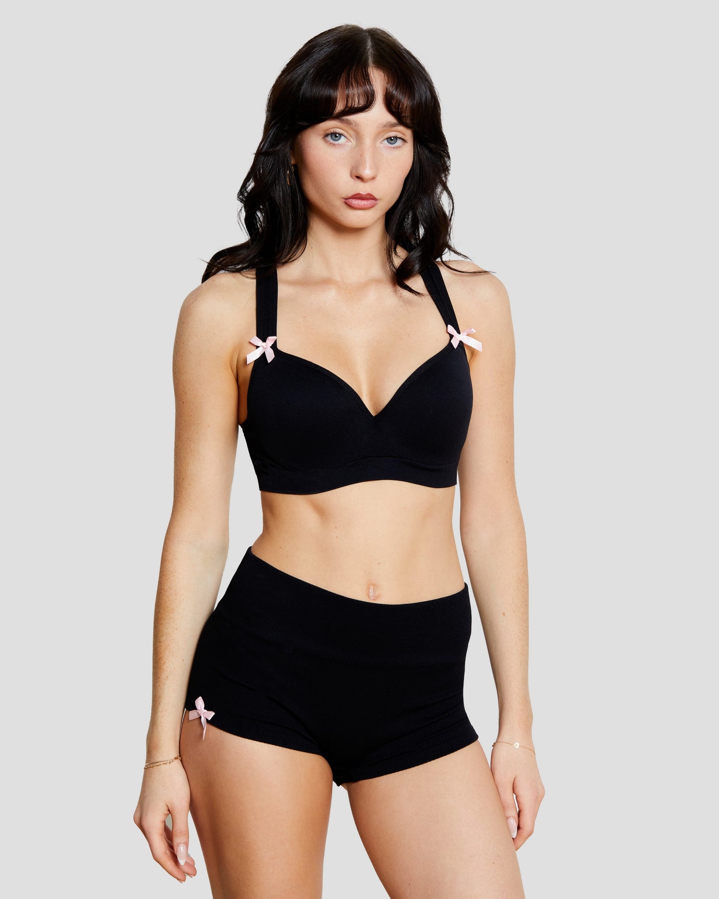 • Matching ribbed hot shorts and racerback bra for a cohesive, stylish look.