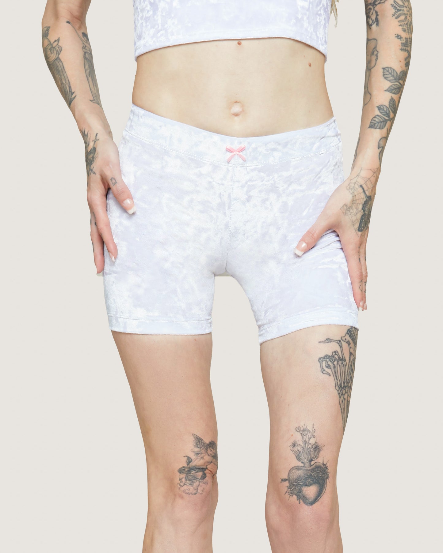 Party up with our Limited Collaboration for a combo of plush and adorable vibes. Bedazzled with our iconic MEOW gems, the flirty bottoms also sport a bow on the waistband. Made entirely in the U.S.A., all Bunny Holiday pieces are handcrafted in South Central, LA by our talented sewers who earn fair pay and perks. Help maintain a rad and jolly community.