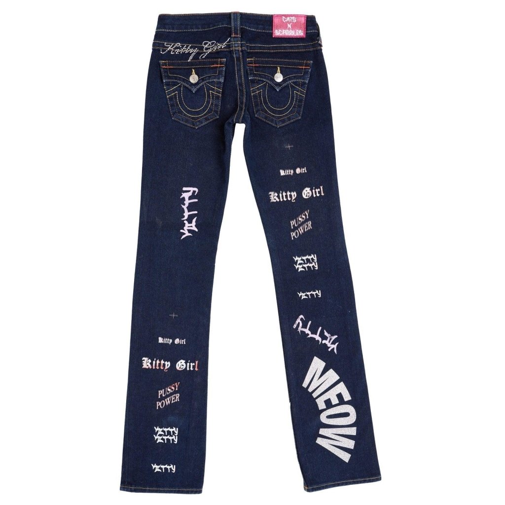This pair of ๐ฎ๐ถ๐๐๐ถ๐๐๐น ๐๐๐๐พ๐ ๐ค is a testament to creativity and sustainability. Rescued from obscurity, it has been lovingly adorned with embellishments, silk screen, patches, and satin bows to create a flirty, up-cycled look for the season. Each design in our collection symbolizes our dedication to turning trash into treasure. At Cats n Scribbles, we believe that if you're not buying recycled products, you're not really recycling. Embrace the charm of repurposed fashion and make a statement that's not just stylish but also responsible.