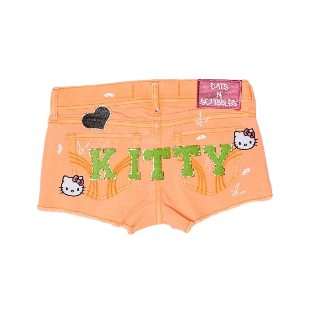 This pair of ๐ฎ๐ถ๐๐๐ถ๐๐๐น ๐๐๐๐พ๐ ๐ค is a testament to creativity and sustainability. Rescued from obscurity, it has been lovingly adorned with embellishments, silk screen, patches, and satin bows to create a flirty, up-cycled look for the season. Each design in our collection symbolizes our dedication to turning trash into treasure. At Cats n Scribbles, we believe that if you're not buying recycled products, you're not really recycling. Embrace the charm of repurposed fashion and make a statement that's not just stylish but also responsible.