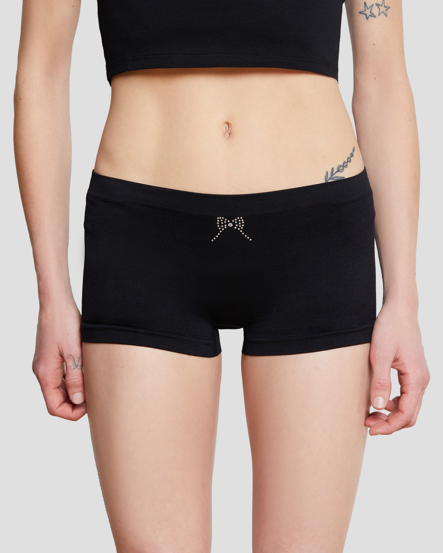 Your go-to for irresistible comfort and playful meow, the ๐ซ๐๐๐๐ป๐๐ธ๐๐๐ ๐ฉ๐ถ๐๐๐ฝ๐๐ ๐๐๐๐ป๐ ๐ป๐๐๐๐ฝ๐๐๐๐ are perfect for lounging, layering, or stealing the show at your next night in. These sleek black hotshorts are crafted from ultra-soft spandex and cotton for a second-skin feel that flatters every curve. Featuring a rhinestone bow detail for a touch of glamour, these shorts are as naughty as they are nice. Pair them with your favorite crop top or oversized hoodie for a vibe thatโs cute and comfy all day long.ย