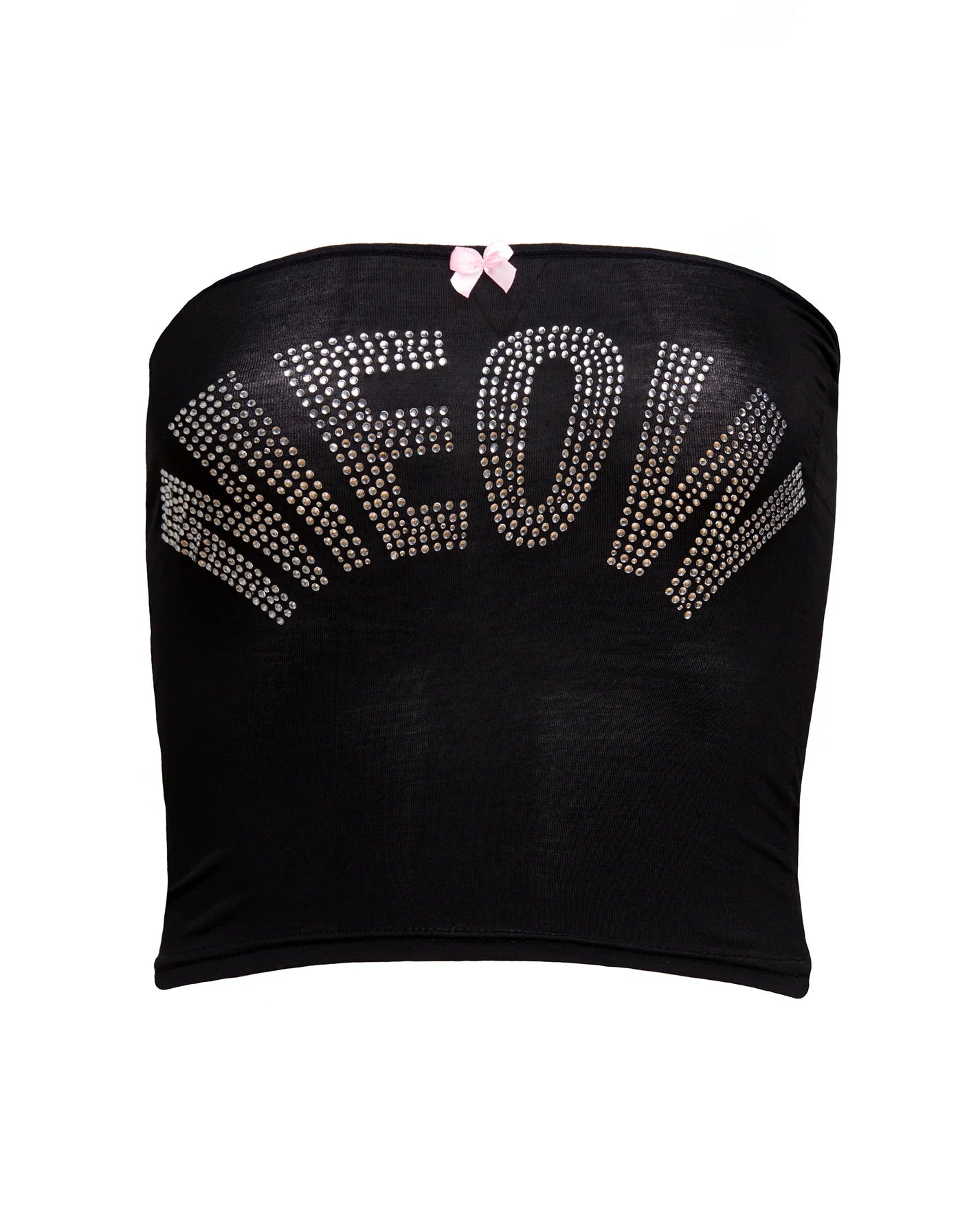 ✨ Meow, it’s time to shine! ✨ The Meow Rhinestone Tube Top is your must-have piece for when you want to turn heads and purr with confidence. 🌟 This tube top is adorned with sparkly rhinestones spelling out “MEOW,” and it’s here to add a touch of sass to your wardrobe. Pair it with your favorite jeans, a mini skirt, or under a blazer to give any look that iconic kitten-approved cuteness. 🐾