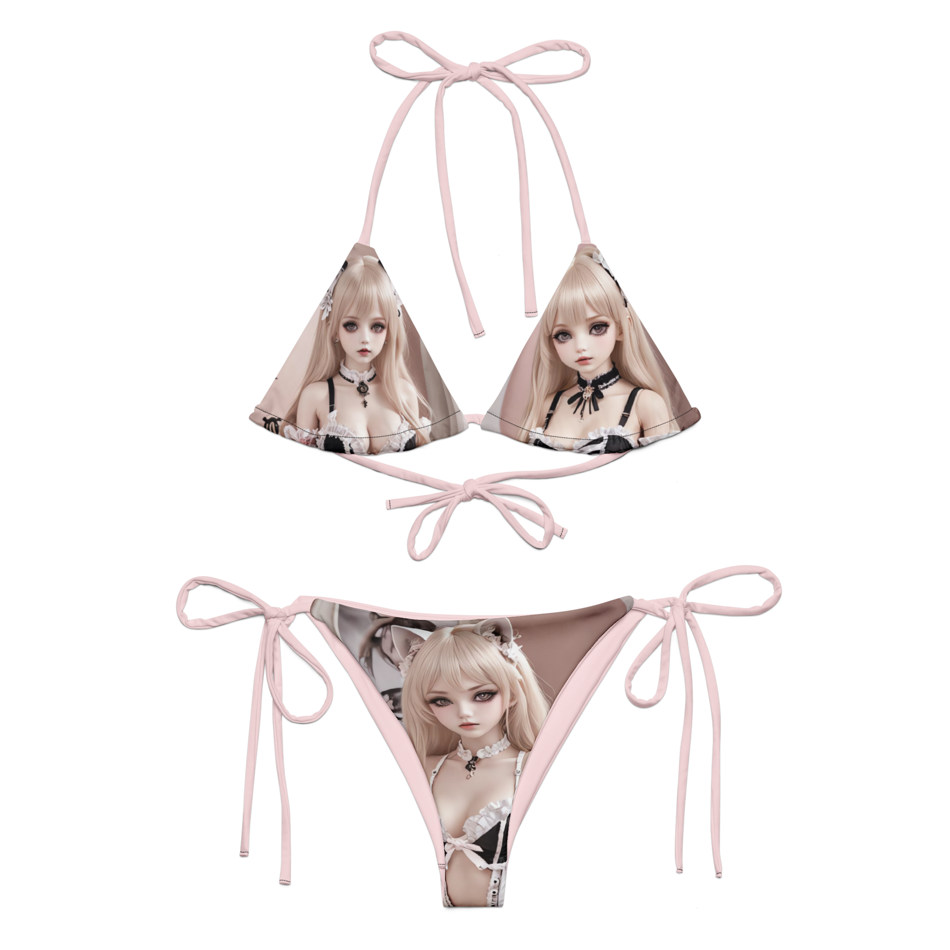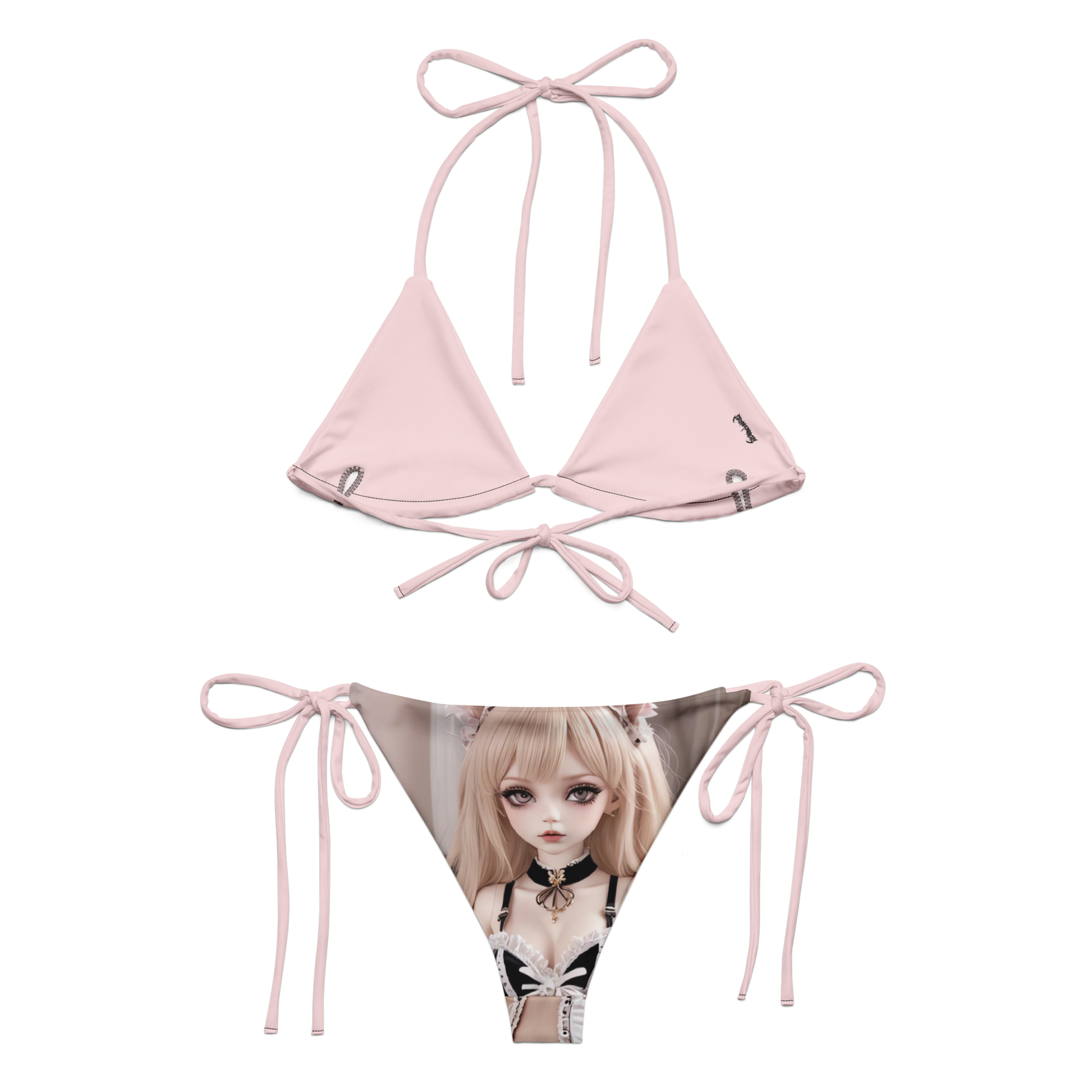 The 𝒟𝒾𝑔𝒾𝓉𝒶𝓁 𝒟𝑜𝓁𝓁 𝐵𝒾𝓀𝒾𝓃𝒾 is your portal to a pixel-perfect paradise—where AI waifus, lolita frills, and kitty-girl daydreams collide. Designed with soft pastel ties and illustrated with anime baddies in maid-core fits, this set turns every poolside into a page out of a manga. Wear it to flirt, swim, or glitch into your next fantasy. You’re the main character.